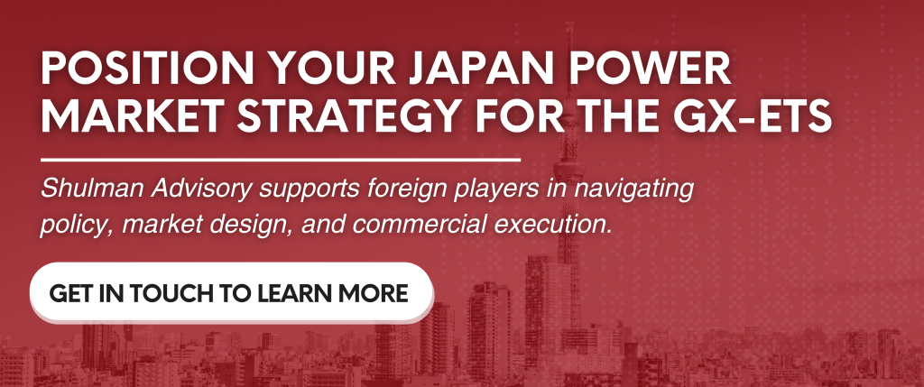 Wondering how the ETS market design could impact your Japan strategy? Shulman Advisory offers bespoke workshops, strategic analysis, guidance on license acquisition, and tailored projects to help you navigate market entry, procurement planning, and investment decisions.